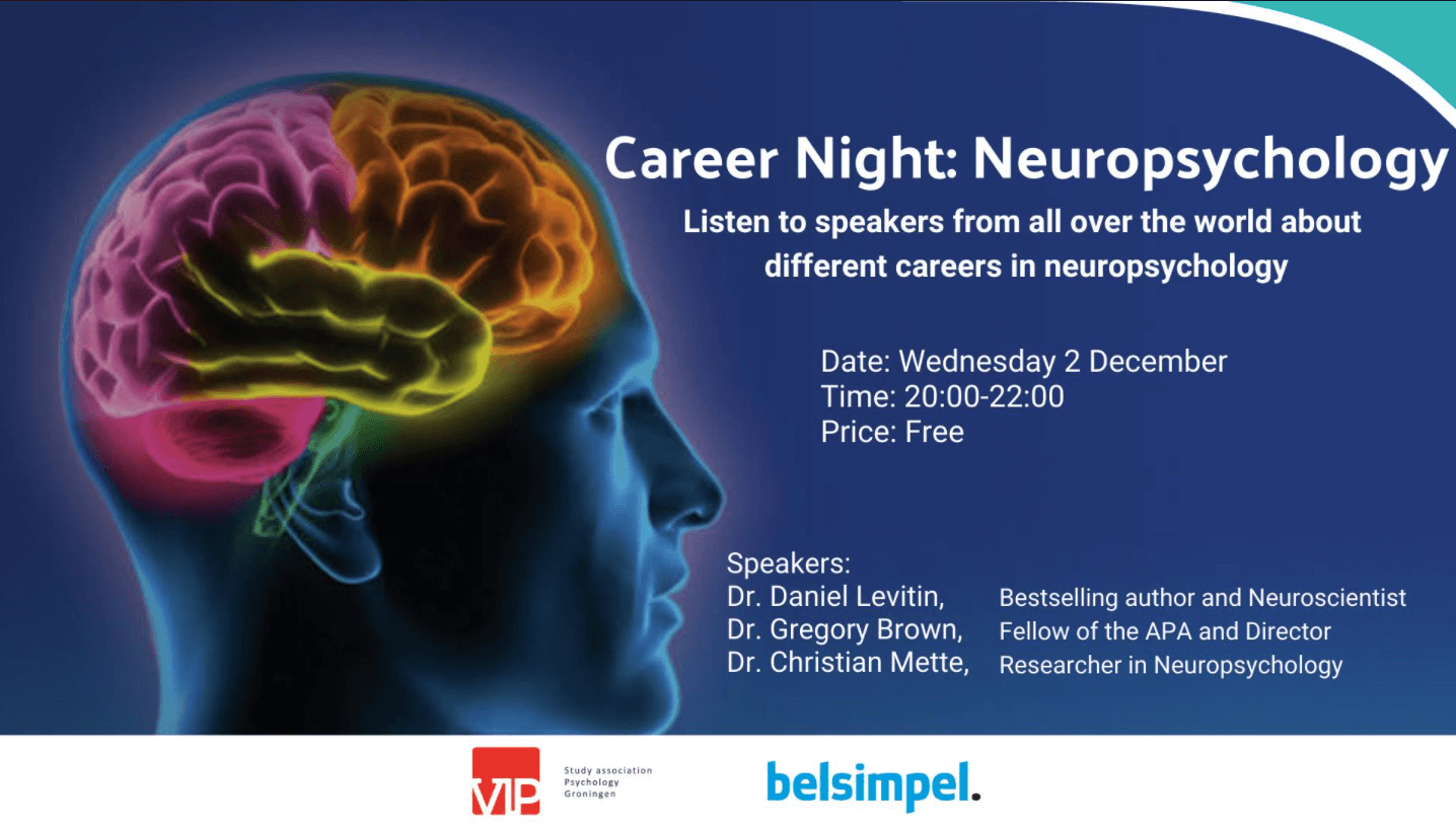 Weiter zur ÜbersichtOn Wednesday 2 December, we will have an extraordinary career night all about Neuropsychology for you! We looked at the opportunities of an online event and we thought: Let’s invite experts from all over the world! We have managed to arrange three experts in the field to speak at our evening. These experts are Dr. Daniel Levitin, Dr. Gregory Brown, and Dr. Christian Mette. They will be talking about their academic path and also about how their work as neuropsychologists looks like. Dr. Levitin is an award-winning neuroscientist, musician, and best-selling author. He is known among other works for “This Is Your Brain on Music” and his public speeches on TED, talk shows, and other events. His research encompasses music, the brain, health, productivity, and creativity. Dr. Brown is the Director of the Neuroimaging and Behavioral Analysis Laboratory at UCSD and Emeritus Professor at the Department of Psychiatry. His research uses computational modeling and brain imaging to investigate neuropsychiatric disorders. Dr. Mette is a professor of psychology and psychotherapist. As a researcher, he is looking into adult ADHD, the assessment and treatment of personality disorders, and more. We’re looking forward to seeing you all at the event!